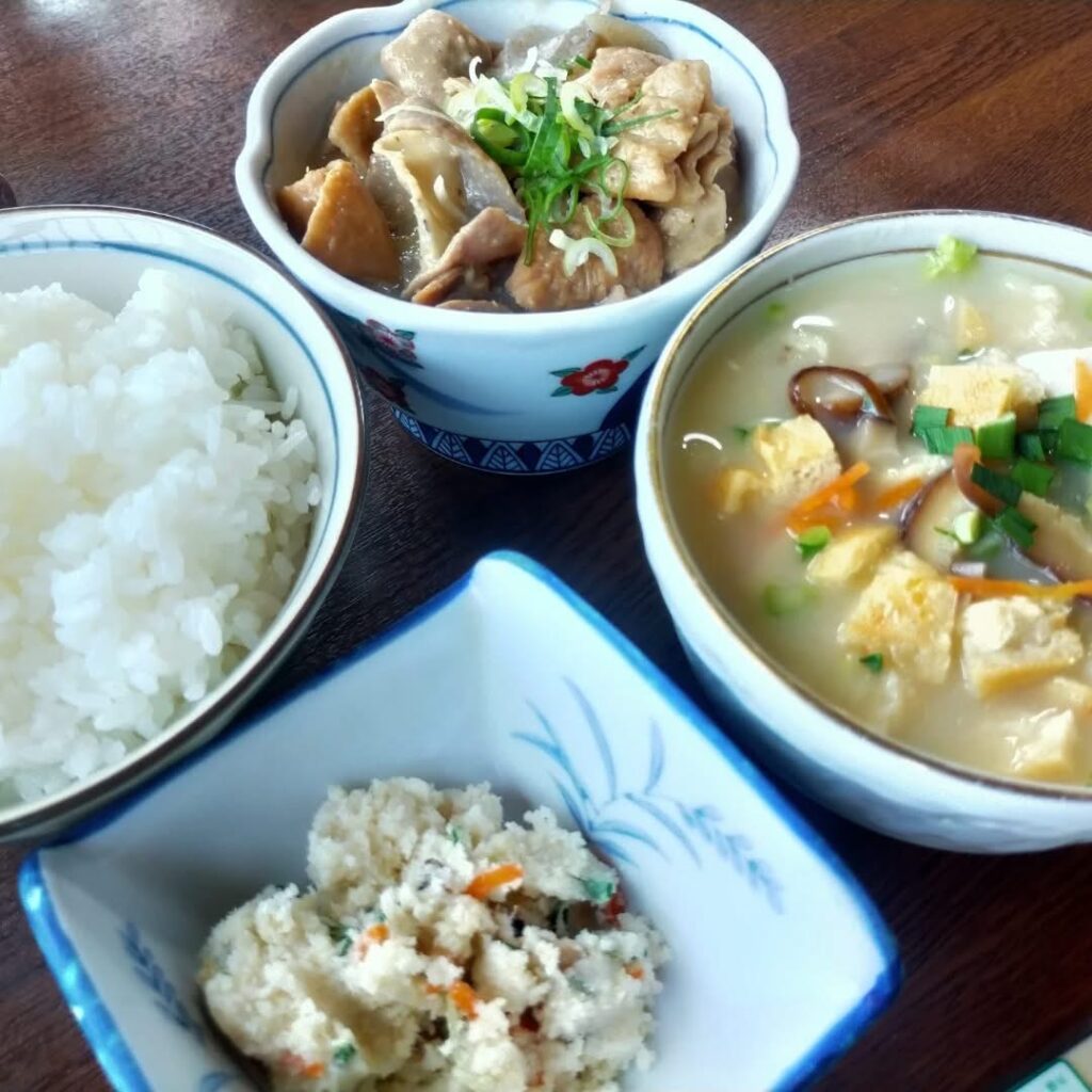 高菜めしとだご汁、もつ煮のセットでどれもおいしかったですね。